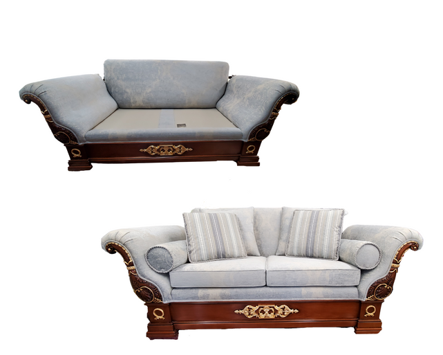 Building on your old frame, the upholsterer re-ties the springs, puts in new webbing and all new padding, and fills and totally recreates the sofa. This is all hand work involving a high order of skills. What you get back is a piece of custom-made furniture.